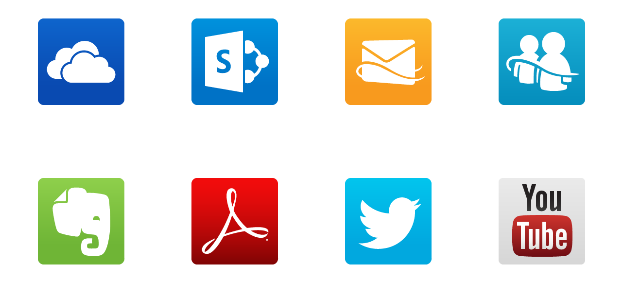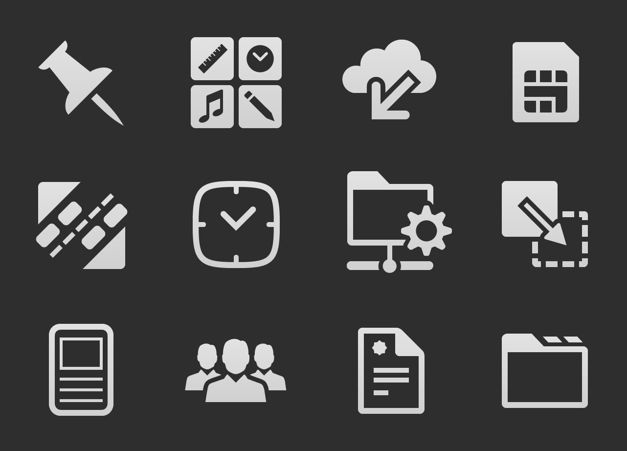 In-App Icons In-app icons, unlike application icons, are designed to be simple, bold, and neutral. This ensures readability without distracting from the page content. We also created color versions for use in Help and Settings menus, sometimes applying color psychology. We also produced additional sizes beyond the core set.
