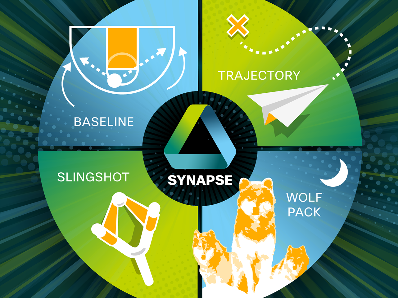 Starting with a simple branding project on information awareness, Cisco sought to portray a flexible ribbon of 3 colour tones for Synapse. Working with a triangle theme, the curves and direction help to represent the flow of information.